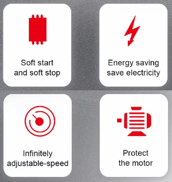 | | Vezérlőtábla ● Alacsony frekvencia ● Nagy nyomaték ● Automatikus feszültségszabályozás |