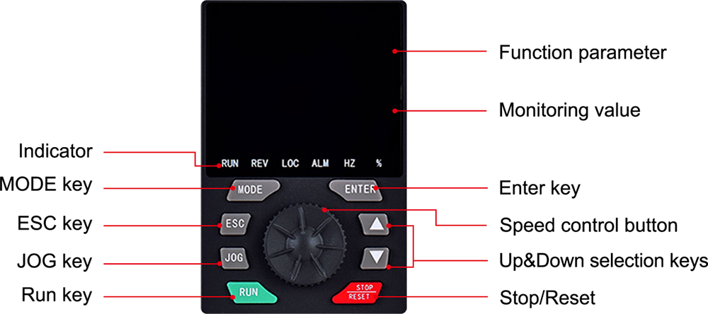 | Start & Stop vezérlőjel | Integrált kezelőpanel | RUN, STOP gombok |