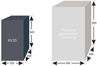 | Letisztult dizájn A beépítési terület 50%-kal csökkent A hangerő 30%-kal csökkent | |