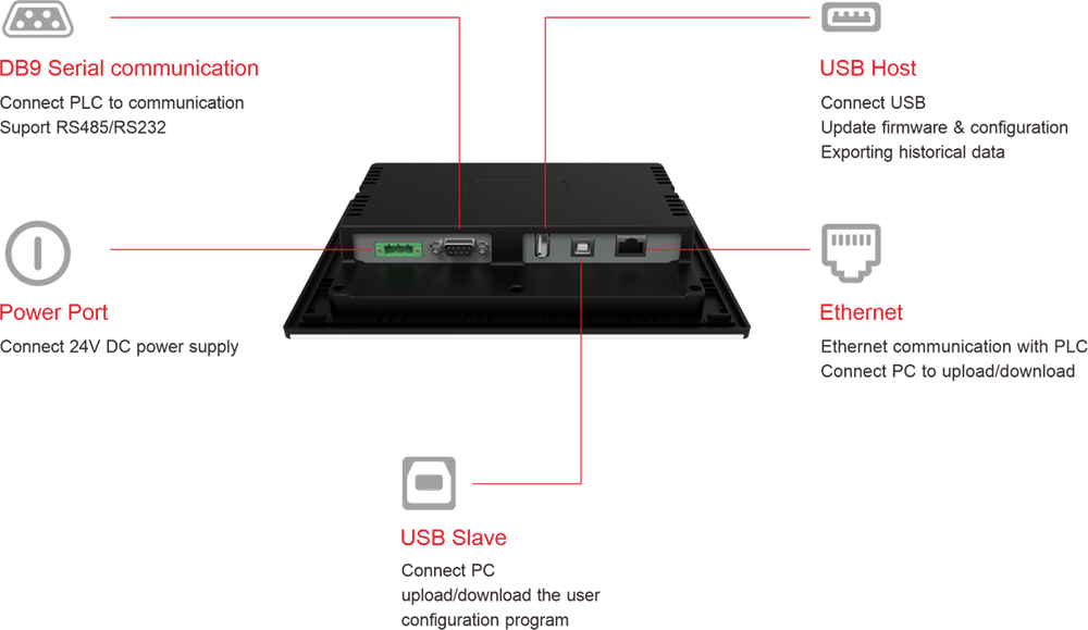 | USB Host | USB2.0 ×1, A típusú (USB1), támogatja az USB-t a frissített firmware-hez, konfigurációhoz és adattároláshoz | ||